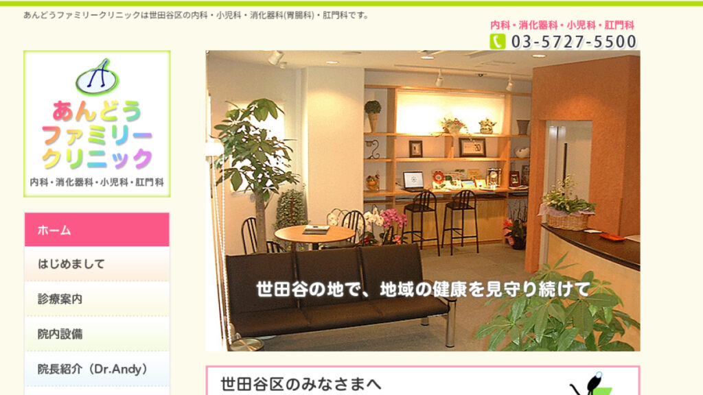 世田谷区にあるこのクリニックは、内科・消化器科・小児科・肛門科を中心に、地域の皆様の健康づくりをサポートしています。「病気だけでなく患者さん自身を診る」ことを大切にし、正確な情報の提供とわかりやすい説明で、日々の健康維持を支えています。消化器疾患(胃・大腸)についても相談したい方におすすめです。